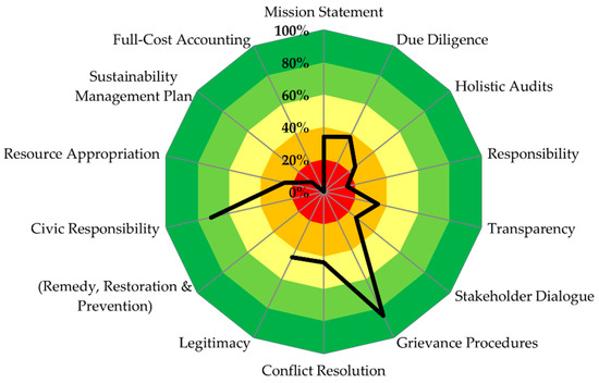 Results (degree of goal achievement, DGAi) of the SAFA-Dimension Good Governance. The subtheme in parentheses (Remedy, Restoration, & Prevention) could not be adapted to the context of the urban food system.