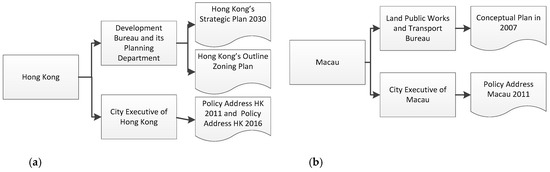 The planning documents and their issuing institutions in its two special administrative regions (a) the planning documents and their issuing institutions in Hong Kong [55,58,59,60]; (b) the planning documents and their issuing institutions in Macau [56,61].