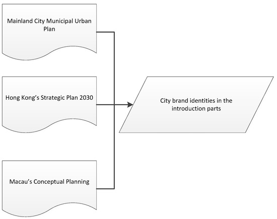 Our analysis begins with an economic and demographic introduction of the eleven cities in the GPRD which constitute our entry point in Section 4. We first map how they present themselves in characteristic sentences or quotes that reveal how they see their economic brand identity (see Table A1). These economic brand identities were collected from the introduction from Urban Master Plans in the case of the mainland cities. These plans are the most important formal documents in urban planning, undergo several rounds of review from different levels of governments and used as the most important reference to understand city band identities in China. In the case of two Special Administrative Regions, Hong Kong and Macau, we based their ideas on their equivalent planning documents, as illustrated in Figure 3. These documents are in English as they are more referred to by local planners.