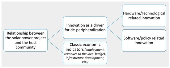 While looking at the local authorities’ perception of the solar power projects’ impact on classical development indicators, we focused our attention on the possible interaction between solar power projects and innovation. The latest has an important explanatory weight when discussing processes of peripheralization. Thus, we believe that innovative behavior of the local community can lead to de-peripheralization of that community. Contrary to the existing studies, we found that none of the solar power projects deployed in Northwest Romania had an impact on employment, revenues to the local budget, other related investments, infrastructure development, or regional visibility. This finding requires us to reconsider the economic argumentation of promoting renewable energy projects for generating economic benefits.