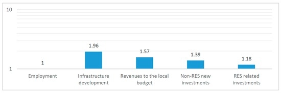 In our questionnaire, we asked public authorities to evaluate on a scale from 1 to 10 (where 1 mean no impact and 10 strong, positive impact) the impact renewable energy projects had on: infrastructure development, revenues to the local budget, employment, non-RES (Renewable Energy Sources) related investments in their community, and investments in RES projects at the local level.