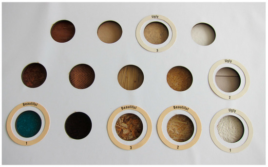 In material appraisals, touch and vision are the most dominant sensorial modalities [34,35]. Earlier studies show that unity-in-variety work in the visual and tactile domain [29,36]. We argue that the aesthetic universals in the materials domain may refer to the relationships between visual and tactile qualities in material appraisals. Subject to our experiences with and through materials [37,38] some assumptions are developed on how a particular material would feel when it is touched based on its visual qualities.