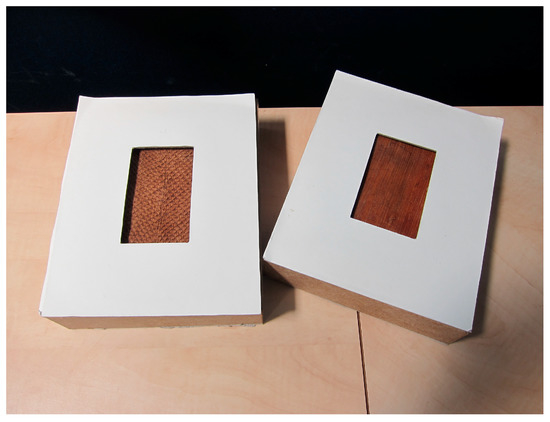 Figure 11 shows the two selected samples. Figure 11a shows the similar sample that has congruent tactile and visual qualities. The contrasting sample (Figure 11b) was obtained by high compression pressure and big size fibres, which resulted in a smooth, but visually irregular and fibred surface.