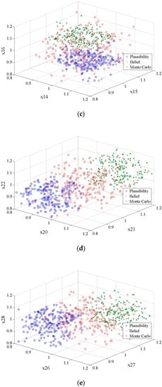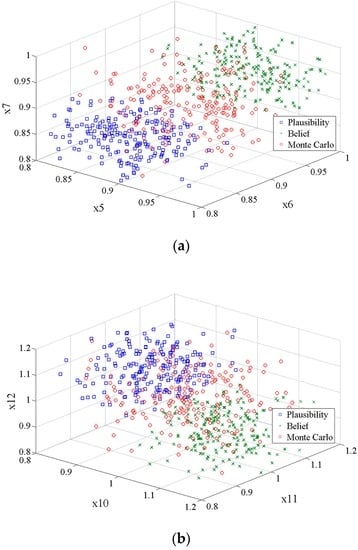Figure 4 shows some sampling results propagated using the LHS method. In the results, uncertainty propagations for the plausibility and belief functions of fuzzy MCS were biased in comparison with those of MCS. These biased propagations were caused by reflecting the epistemic uncertainties incurred from inaccurate and insufficient information.