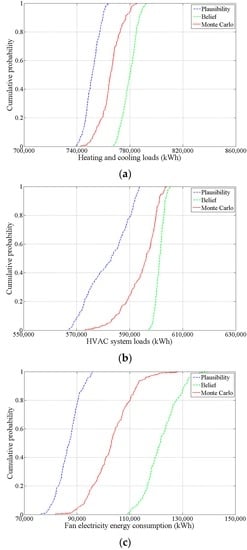 6]. If the building stakeholders (e.g., architect, owner, engineer, and occupants) have optimistic preferences about the model risks, the plausibility distribution should be used for risk-based decision support. Otherwise, the belief distribution should be used. In the results, the uncertainty results of the thermal zone showed that the epistemic uncertainties have a decisive effect on the heating/cooling load since a strong difference was shown in the distance between the plausibility and belief distribution.