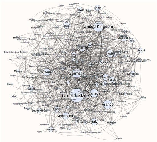 However, it is complex to obtain a complete picture of global R&D organization. Since there is no direct approach, prior studies utilized indirect approaches which might be limited by incomplete data and thus lead the comparison among countries difficult. Those indirect approaches used in literature for measuring international R&D were, for example, foreign direct investments in R&D [33], foreign-affiliated R&D laboratories [34], foreign-owned R&D facilities [33], outsourced offshore R&D service [35], employees mobility [36,37], R&D and innovation surveys for obtaining up-to-date and detailed company-level data [23], patent citation [19], and international co-patenting [27,28,38,39]. In addition, the relationship between innovation and internationalization [40] was compared and a framework for analyzing different patterns of internationalization of R&D and innovation was proposed [41].