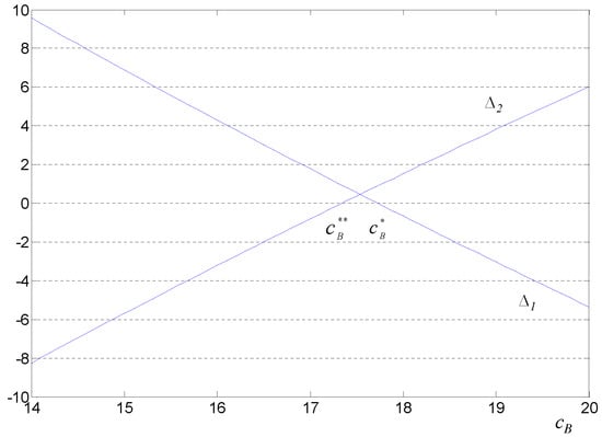 As mentioned in Section 1, organic food products fit the customers’ organic preferences and bring extra utility, but incur lower yields and higher production cost than non-organic food products. Thus, it is reasonable to assume that and define , where and denote the unit production cost of organic food products and non-organic food products, respectively. Note in some special cases, organic production cost may not be higher than non-organic production cost []. In our paper, we consider the general cases where organic production incurs higher cost.