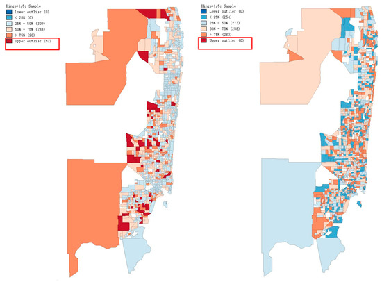 Additionally, the Local Moran’s I can be defined (for a given i-th census tract) as [56]: