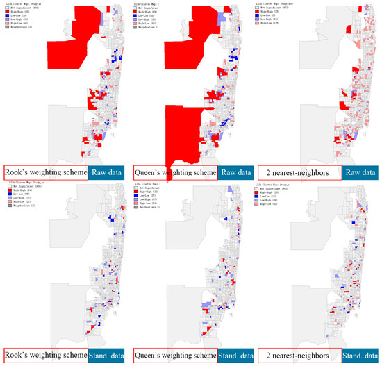 Local Moran’ I Statistics Based on Raw and Standardized Data