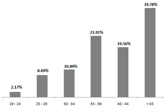 The participants were all victims of gender violence participating in group therapy. The average age was 41 according to the distributions by group and age ranges shown in Table 1 and Figure 1. The women belonged to different social classes and were enrolled in the therapy to overcome the damage caused in their life.