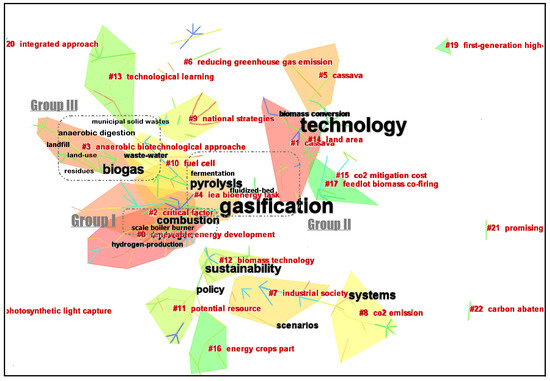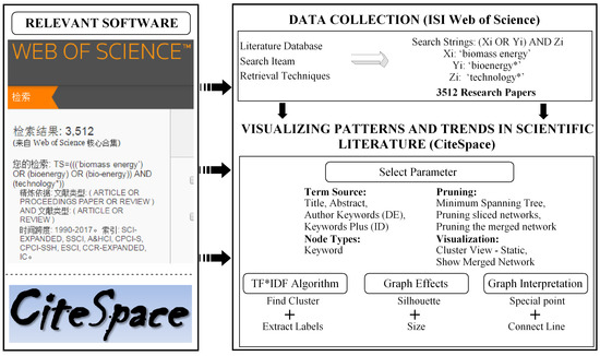 In order to determine the progress of this biomass technological evolution, some specific foci are needed. Bibliometric analysis and visualization technology have been developed for a comprehensive literature analysis. CiteSpace, software developed by Professor Chen, is specially used to identify and visualize scientific literature as a Java application [19]. CiteSpace is a visual analysis software which is designed for scientific literature research, and its cluster analysis is used to find the foci and display it in a visual way [20,21], which can help to explore the research foci, the evolution trend, and the frontier of the field of biomass energy technology. From the visual graphs generated through CiteSpace, the trend foci which were found and expressed in the keywords and clusters are in accordance with the characteristics of technological paradigm theory [22,23,24].