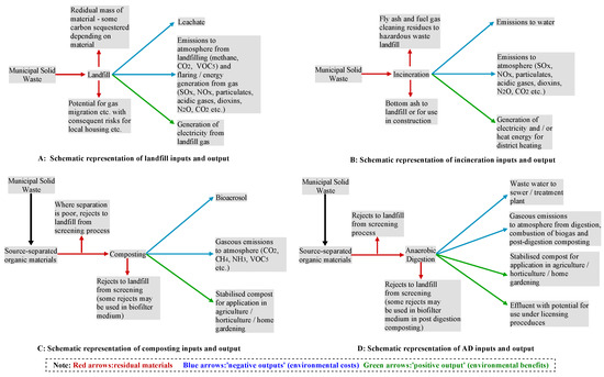 A schematic representation of landfill, incineration, composting, and anaerobic digestion [123].