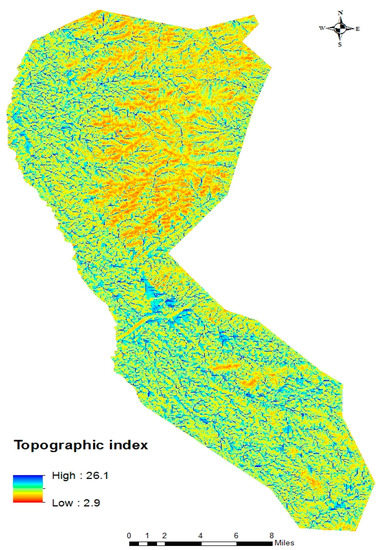 This is a steady-state wetness index, and it has been shown to predict solum depth in some studies [45]. TWI is strongly correlated with soil moisture, thus it can provide indirect information about land cover and agricultural potential [46].