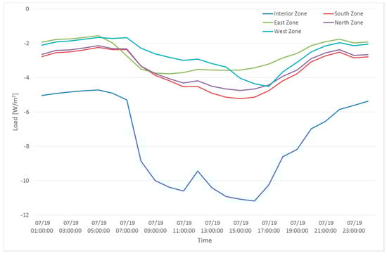 Cooling load for different zones on a peak day.