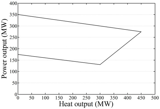 Feasible operation region of a typical CHP unit.