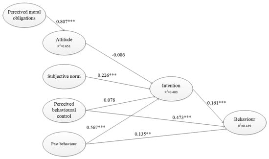 | Perceived moral obligations → Attitude | H1 | 0.807 *** | Accept |