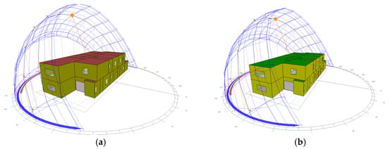 24]. In the case of the green roof, there is not only a soil layer containing moisture content, but also plants provide shading above the whole roof surface.