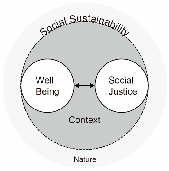 As discussed previously, due to diverging study perspectives and discipline-specific criteria, no consensus on the definition of social sustainability has yet been reached. Little has been done to integrate the diverse social sustainability themes and their contextual interpretations into a more comprehensive conceptual framework. In this section, we propose an integrative conceptual framework of social sustainability, comprising two key contextualized components: well-being and social justice.