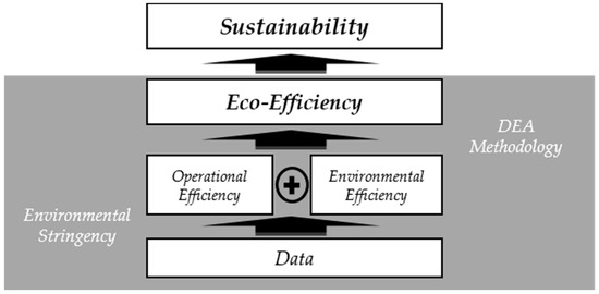 The conceptual DEA framework of eco-efficiency evaluation for sustainability is depicted in Figure 1.