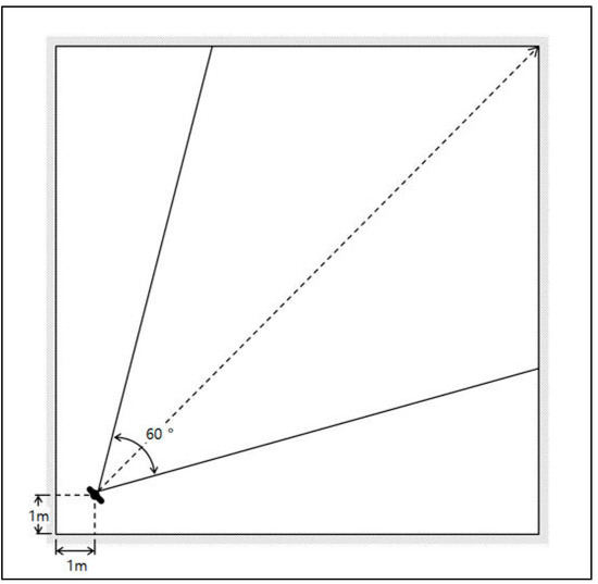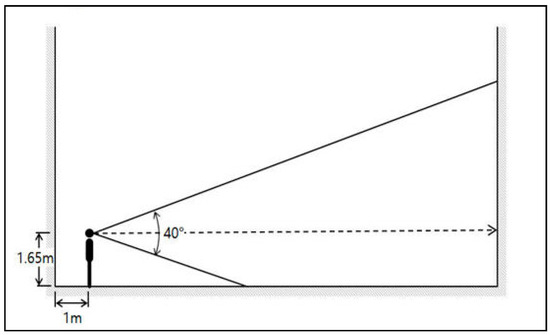To simulate the 36 urban squares that cover all combinations of D/H ratios, square sizes, and facade designs listed in Table 1, this study used SketchUp Make 2016. After simulating the squares, the author took snapshots of the squares from the same location at the same vertical and horizontal angles (Figure 2 and Figure 3), selecting the position to simulate a scene that a person could see when entering from a corner of the square. The eye height was 165 cm, based on the average height of a Korean male (174.9 cm) [29].