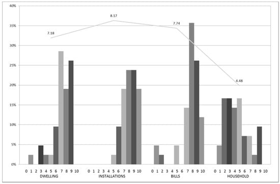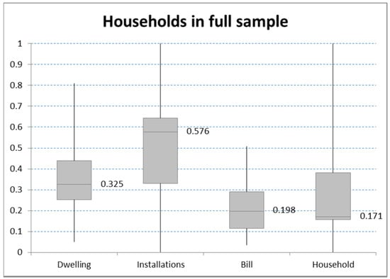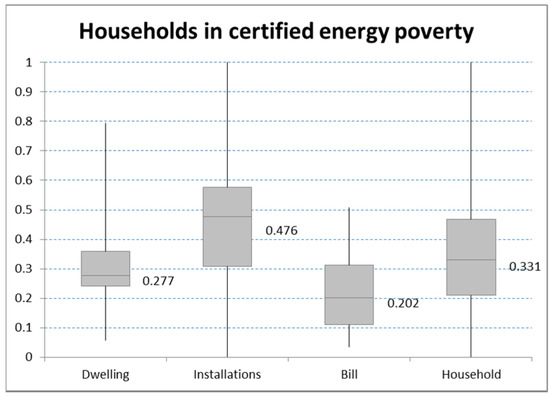 Finally, these indicators also point to the source of energy poverty in the subject households, which, given the similarity of the results concerning the building, installation, and tariff characteristics, lies in the profile of the household. The difference between the installation and the bill indexes may be due to the need to excessively constrain energy consumption in response to low income levels.