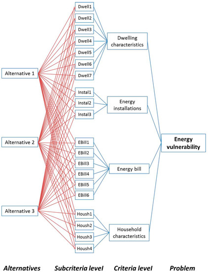 In this way, assessing the degree of energy vulnerability of a given household, the variables of which are known, is undertaken by comparing this household and the two standards. In other words, assessing vulnerability is reduced to evaluating three alternative scenarios using an integrated analysis of different variables, some of which may conflict with each other. This is a multi-criteria analysis problem.