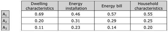 As an example of how we can use this methodology, we can calculate the final vector for the factor or criteria ‘Dwelling characteristics’ for one household. According to Table 1, this factor is defined by seven variables:
