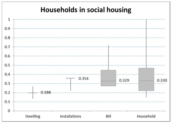 These previous studies concluded that the characteristics of buildings and installations are a key factor, especially for low-income households, and local management can contribute to solving the problem globally. As suggested by the report “Energy poverty and vulnerable consumers in the energy sector across the EU: analysis of policies and measures” [72], social housing is at the centre of multiple initiatives since social-housing dwellers may be particularly vulnerable to energy poverty [52,54].