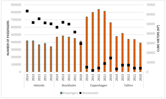Maritime transportation trends have changed rapidly during the last decade, facing numerous green port challenges [1,2]. The number of passengers rises steadily, by more than 250% from 2000 to 2016 [3]. The cruise ship market has grown worldwide and has consequently ”introduced a unique set of environmental pressures that need to be addressed and investigated, particularly those pertaining to waste management” as Butt ([4], p. 592) observes. Three trends are identifiable in the Baltic maritime transportation: (1) an increased intensification of shipping; (2) a change in the structure of transported goods (steady increase of liquid bulk); and (3) ports aiming to improve their operations using numerous developments and programs.