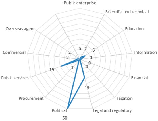- ‘Political tools’ holds a special position for both governments: China and Taiwan governments seem to have similar preferences for political tool usage. Political tools hold the number one position both in China and Taiwan. We refer back to the definition proposed by Rothwell and Zegveld (1981) and their causal process of policy tools presented in Figure 1. These political tools will improve the R&D activities and indirectly support industry development and innovation. With respect to Industry 4.0, this means that China and Taiwan’s governments tend to adopt this policy tool first when cultivating industry innovation and accelerating emerging technologies, talents, and mechanism infusion [].
