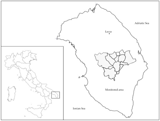 - Lugoli, F.; Leopizzi, M.I.; Bagordo, F.; Grassi, T.; Guido, M.; De Donno, A. Widespread microbiological groundwater contamination in the South-eastern Salento (Puglia-Italy). J. Environ. Monit. 2011, 13, 192–200. [Google Scholar] [CrossRef] [PubMed]