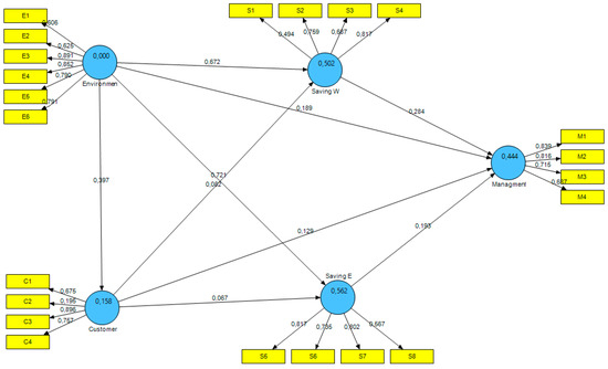 All the hypotheses are confirmed, considering the nine proposed relationships (Table 4), except for the relationship between clients, which is partially accepted (customers and management are confirmed, but on the contrary, energy-saving and water-saving are not confirmed).