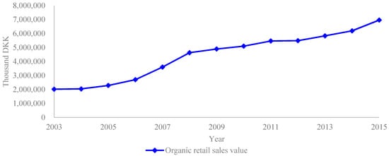 Evolution of retail sales value in Denmark, 2003–2015. Source: StatBank Denmark, 2017 [66].