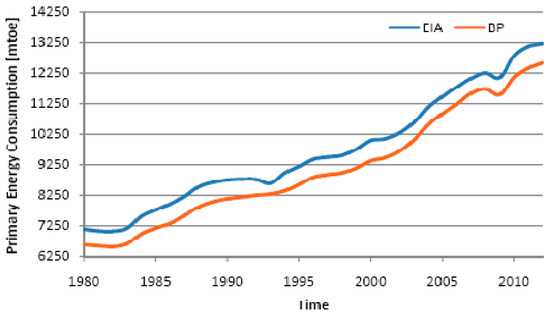 Examining the data series, the setback of energy consumption follows the economic crisis began in 2008. As shown in Figure 2, after the slowdown in 2008, both the British Petroleum [19] and the International Energy Agency [20] show that the consumptions grew until to reach about 13 million tonnes oil equivalent (Mtoe) with the same trend for the two sources [19,20].
