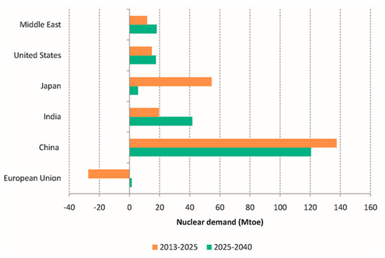 Variation of nuclear demand over the period 2013–2025 and the period 2025–2040. Source: IEA, 2015 [2].