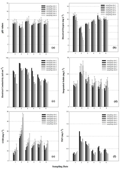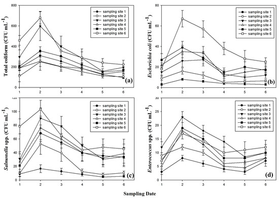 2.5. Statistical Analysis of Water Quality and Pathogens