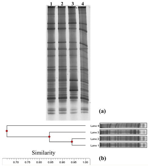 2.4. PCR-DGGE Analysis of Microbial Communities