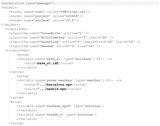 Each one of these projects owns specific building models (the building geometry), based on the BIM methodology [49], materials, constructing solution, weathers, and orientations that can be permutated on the experiments. These permutations are the key elements that are defined by the analyst since it defines the space to be explored by the model (Figure 9).