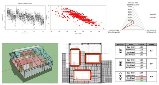 In Figure 11, the results obtained from NECADA for the e(CO) building are shown [50]. The Pareto frontier represented in the upper left area of the figure, allowed us to determine the best fit among all the possible alternatives in the model.