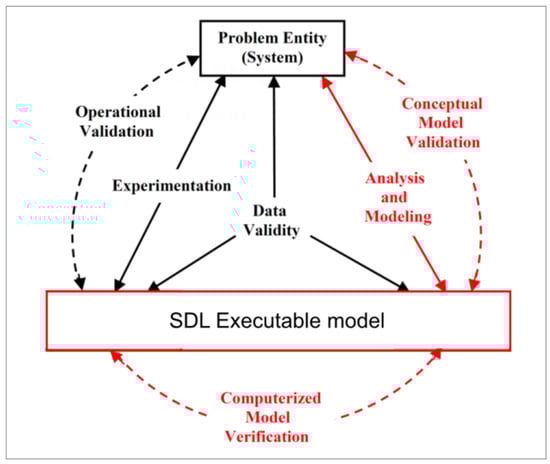 Model validation was performed with the SDL representation of the model, so that all project members involved could participate in the validation process. Verification was assured as the tool recognizes SDL diagrams; however, other validation techniques could also be applied (black box, white box, Turing test, etc.).