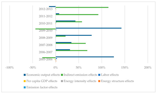 Contribution rates of various effects after factor decomposition in the 2005 to 2013 period.