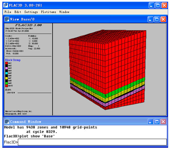 Based on the actual conditions of the Wangjiazhai coal mine, the model was determined to be 770 m long (along the strike of the seams), 390 m wide (along the dip direction of the seams) and 515 m deep. It has 9438 elements and 10,948 grid points (Figure 2).