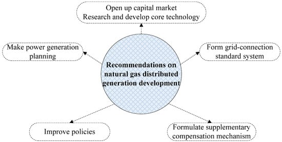 From Section 3.1, we can see that currently, the main problems of natural gas distributed generation are focused on the technology and subsidies, in which the former is more serious. To solve the above problems, the corresponding recommendations are proposed as follows (Figure 4):