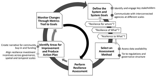 Today’s highly urbanized world is characterized by growing levels of risk and uncertainty. Traditionally, mitigating the risk associated with future uncertainties (related to climate change, economic shocks, population change, etc.) has been one of the main purposes of urban planning activities [1]. Friedmann [2] (p. 482) suggested that “planning is a professional practice that specifically seeks to connect forms of knowledge with forms of action in the public domain”. He called for transforming this traditional mode of planning based on instrumental rationality, blueprint implementation, and top-down action into a non-Euclidian (non-engineering) mode. Non-Euclidian planning is “normative, innovative, political, transactive, and based on social learning” [3] (p. 372). While non-Euclidean planning remains limited, resilience has emerged as a major concept that is increasingly used to promote urban planning, management theories, and management practices aimed at addressing issues related to vulnerability, risk, and uncertainty [4]. If we consider vulnerability as the result of exposure to disturbance, system sensitivity, and system resilience (or adaptive capacity) [5,6,7,8], then “each community must inevitably deal with the management of multiple and interacting exposures to different threats” [8] (p. 2230). Community resilience could be seen as the capacity of a community to manage current and emerging threats by addressing the ability (or lack thereof) to adapt to changing threats and challenges over time, and drive adaptation pathways towards sustainable futures [8]. Therefore, community resilience has been framed as “both an outcome, especially when linked to improved adaptive capacity of communities, and a process or pathway linked to dynamic changes over time associated with community learning and the willingness of communities to take responsibility and control of their development pathways” [9] (p. 4). “Community resilience is indeed gaining prominence as a targeted process of societal development, both within the scientific literature and policymaking discourses on sustainability” [8] (p. 2230). When community resilience is explored through an urban systems perspective, the framing and understanding of what a resilient city is, and how urban resilience should be conceived and measured is still under debate [10]. Limited knowledge exists on the implications of interlinkages between different urban sub-systems (i.e., environmental, social, economic, and physical) for achieving urban resilience through a multiscale, cross-sector, and multidisciplinary perspective [4,11]. The concept of urban resilience also brings to light emerging societal tensions between “continuity” (the capacity to maintain the performance of roles and functions within a society), “change” (societal evolution), and inclusion and exclusion within a given society [12]. Furthermore, additional clarification is needed to establish how urban resilience relates to other key concepts such as adaptation, recovery, and sustainability in order to maximize synergies and minimize trade-offs among them [13] and avoid potential conceptual confusions.