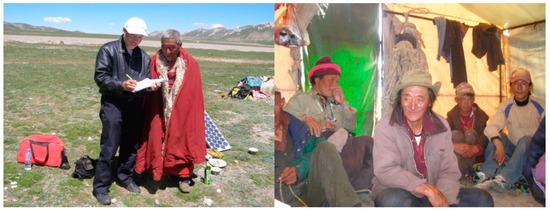 The Three Rivers Source Region (31°28′–36°17′N, 89°37′–102°20′E) covers a total area of 363,000 km2 and had a total population of 557,200 in 2009 (Figure 1). Most of the region’s inhabitants are ethnic Tibetans, whose main land-use activity is grazing. The region includes 16 counties and one township of Geermu City. The altitude of the study area ranges from 4000 to 5800 m above mean sea level. The annual mean temperature is between 2.9 °C and −3.9 °C, and the annual average rainfall varies from 770 mm in Banma County in the south-east to 292 mm in Tanggulashan Township in the south-west, based on data from weather observation stations. Rangeland types include alpine meadow, marsh, alpine steppe, and alpine desert, with alpine meadow being the dominant type. The main livestock raised by the herdsmen are sheep and yak.