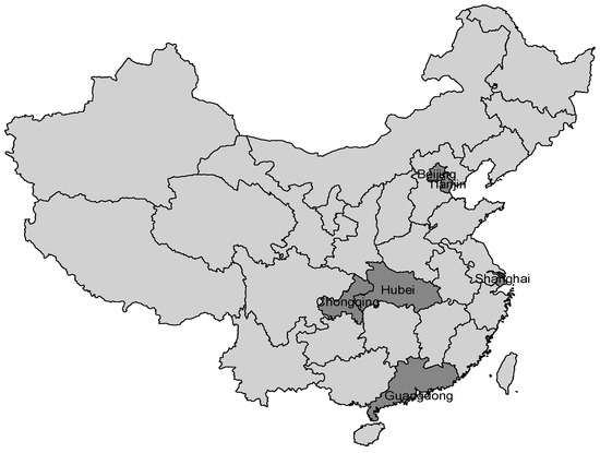 Based on these figures, this paper focuses on the impact of carbon trading policy on the innovation of local enterprises. Taking into account the major pilots in the eastern developed provinces and cities, the national policy and system has a strong advantage in its particularity, though not enough to accurately assess the effect of carbon trading policy. Hubei Province, is located in central China—similar to other provinces—showed no particularity. In this paper, Hubei Province considered representative across provinces is the focus of the study. For the control group selection, we take into account the eastern provinces and cities of economic development, geographical advantages, policies, and other conditions which are much higher than the central and western regions of China. As Hubei is located in the central part of China, in order to more accurately assess the effect of carbon trading policy on regional enterprise innovation, the central and western provinces of China were selected as a research control group.
