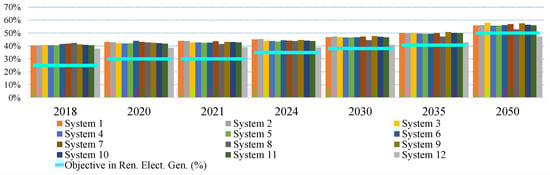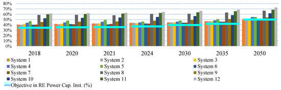 For Cozumel Island, the target is to reduce the fossil fuel consumption through electricity production from RETs to cover 50% of all electric consumption by 2050. This target is within the range proposed by [,]: from 15% (Antigua and Barbuda) to 100% (Dominica) for the Caribbean Islands. Therefore, the methodology used in this case study can be applied to other islands or to the SIDS.