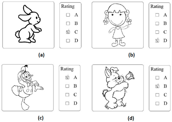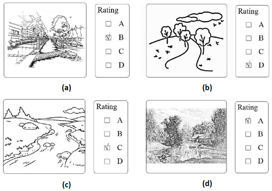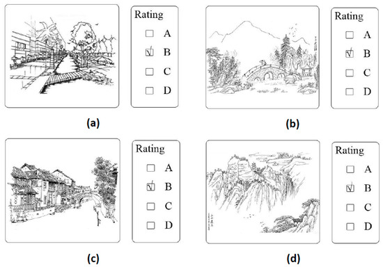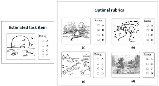 Crowdsourcing has been widely used to collect ratings for a wide range of items and issues [51,52,53]. It is necessary to construct a rating model when collecting the information through a crowdsourcing platform. Massive open online courses (MOOC), for example, often require participants to rate others’ homework. As shown in Figure 1, crowdsourcing workers are required to rate, from a grade of A to D, an art assignment of a landscape painting submitted by a student from an online class. In this paper, a rating model is used in real estate appraisal.