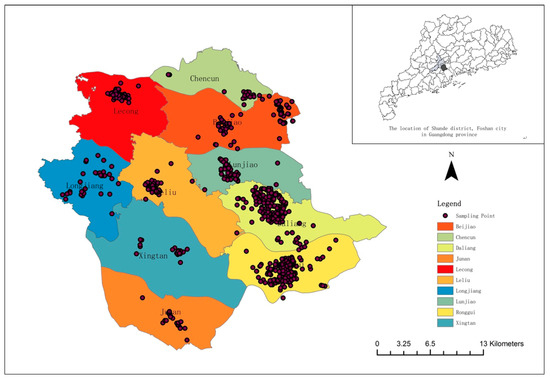 The sample data is sampled by Shunde District Land Resources Bureau. It covers the entire district, which includes residential and commercial land with a robust market, urban-rural fringe area with a thin market, and some special use areas. It contains a total of 7185 records. Each sampling point has 27 attribute fields, such as market price, geographic coordinates, recorded time, number of floors, land use type, inside floor area, distance from the subway station, density of bus stations, etc. The sampling points are shown in Figure 7.