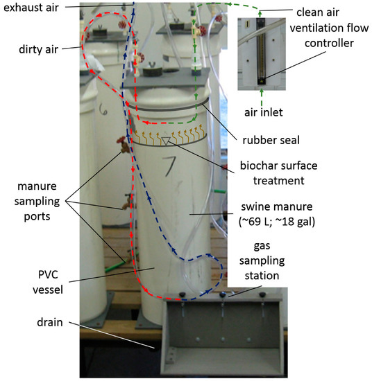 - Chowdhury, M.A.; de Neergaard, A.; Jensen, L.S. Potential of aeration flow rate and bio-char addition to reduce greenhouse gas and ammonia emissions during manure composting. Chemosphere 2014, 97, 16–25. [Google Scholar] [CrossRef] [PubMed]